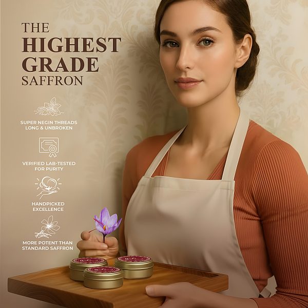 Experience the finest quality saffron — rich, aromatic, and intensely vibrant. Our Super Negin threads are handpicked and lab-tested to ensure exceptional levels of Safranal (aroma), Picocrocin (flavor), and Crocin (color).